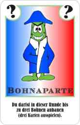 Napoleon Bohnaparte war ein großer Feldherr, also darf man in dieser Runde bis zu drei Bohnenkarten auf seinen Feldern anbauen, bzw. zwei Bohnen und eine "!"-Karte... oder so... . |