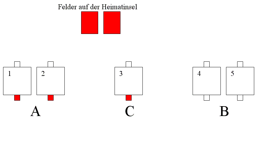 Hat ein Spieler zum Beispiel keinen Hafen auf einer B Insel, so kommt nach A sofort C, vorausgesetzt er hat dort einen Hafen.