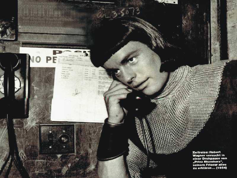 Robert Wagner während einer Drehpause des Filmes PRINZ EISENHERZ von Henry Hathaway 1954. Dieses Foto habe ich aus einer Ausgabe der Kinozeitschrift CINEMA. | ![]() |