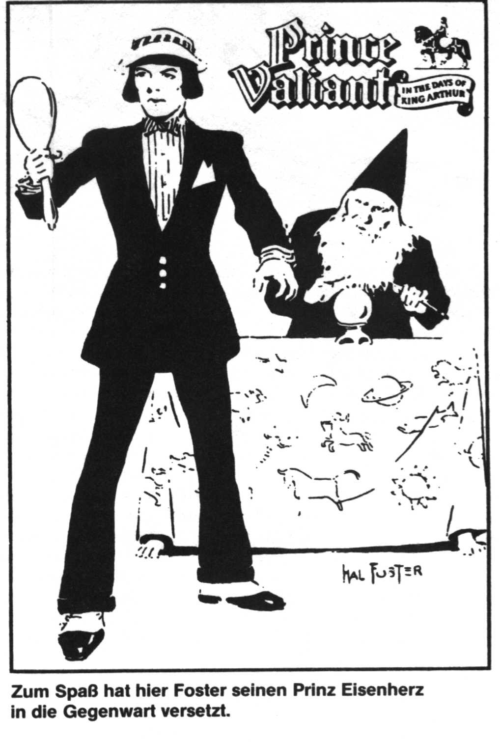 Zum Spaß hat hier Foster seinen Prinz Eisenherz in die Gegenwart versetzt. Ich weiß leider nicht, von wann dieses Bild ist, aber es ist Bestandteil des Artikels "Wie arbeitet Hal Foster?" von Wolfgang J. Fuchs. | ![]() |