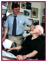![]() Murphy began collaborating with Foster in 1970 and took over the strip when Foster retired the following year. "Valiant" traces the epic adventures of the brave and noble prince, a knight of King Arthur's Round Table. Prince Valiant embodies the heroic quest, setting off for foreign lands at the request of his king, or in response to the designs of evil men. In the course of the strip, Valiant has married and had five children and now one grandchild. Stories have ranged from epic adventures to events around the Valiant home. Eschewing word balloons, the strip is composed of illustrative cartoons with narrative and dialogue at the bottom. King Features Syndicate distributes "Prince Valiant" to more than 350 newspapers worldwide. Murphy had known Foster for years, and when Foster decided that he needed more leisure time, he invited Murphy to work on "Valiant." Foster had long admired the work on Murphy's strip, "Big Ben Bolt," a boxing story strip syndicated by King Features from 1950 to 1974. Murphy was born May 3, 1919, in New York City. His father became western manager for Doubleday and an advertising salesman, and moved the family to Chicago. He moved the family back East when John was 11, and the Murphys settled in New Rochelle, N.Y. Murphy became interested in art early, and started attending Saturday art classes when he was 9. When the family moved back to New York, John continued to study art. He drew sports cartoons in high school and, at 13, tried to sell some of his illustrations -- with little success. It was fortuitous that one summer in 1934, while playing baseball, he was approached by Norman Rockwell and asked to be the model for a Saturday Evening Post cover. He was so fascinated by working with Rockwell, he decided that he, too, would one day be an illustrator. Rockwell helped Murphy map out his art education, and was instrumental in getting him a scholarship to the Phoenix Art Institute in New York City. He also insisted that Murphy study under his old teacher, the anatomist George Bridgman, at the Arts Student League in New York City.